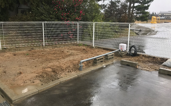 井戸設置完了後、採水試験を行うと思っていた程の水量が確保できず汲み上げ水量は毎分15L/minとかなり少ない状態でした。